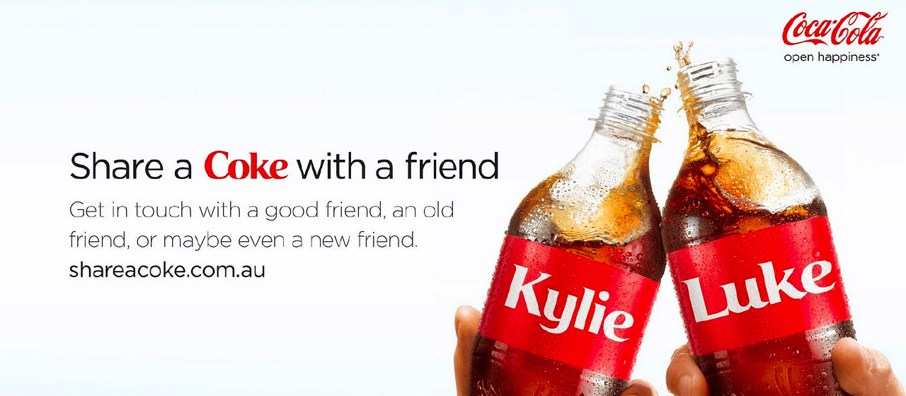 The “Share a Coke” campaign from Coca-Cola, which featured personalized labels with people’s names on them, encouraging people to share a Coke with someone special